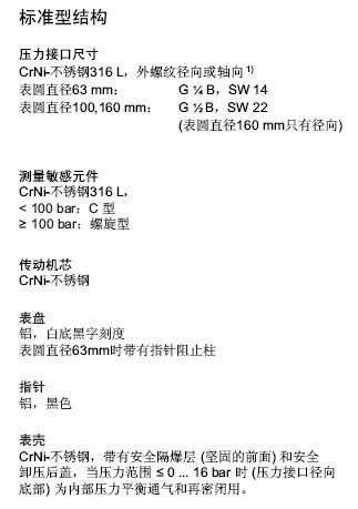 波登管壓力表,不銹鋼系列,安全型,表圓直徑63,100,160